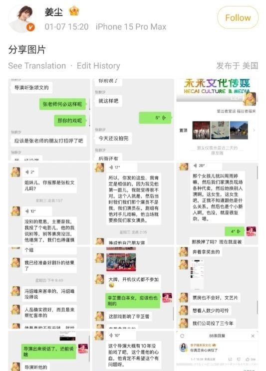这还不算完,姜尘接着放出的禾采文化传媒投资人的爆料,更是让事儿越闹越大。这位投资人那可是一点情面都不留,直言从见到张颂文第一眼起,就感觉这人有点 “不对劲”。“在剧组的时候,张颂文居然当场提出要换掉已经定好的女演员,非让他带来的周语婷上,这不是搅乱剧组的安排!” 投资人的话就像一记记重锤,敲得大家心里直犯嘀咕。而且,投资人还提到张颂文和辛芷蕾合作的那部大戏,辛芷蕾为了这部戏拼了老命,前期研读剧本,拍摄时全身心投入,冯绍峰也特别仗义,象征性拿个红包就来客串帮忙,结果开机仪式这么重要的场合,张颂文居然玩起了 “失踪”,这可太让大家失望了。